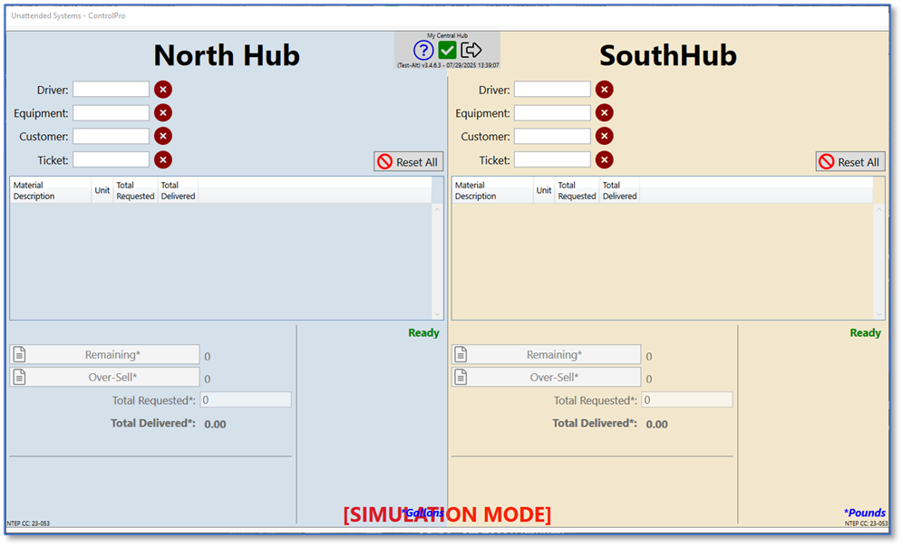 To get started, we need to open the system screen. The system screen is where all tickets are processed. We have three different system types available: default, simple, and unattended. Below are screenshots of what each screen looks like. The unattended screen is used by drivers to run their own loads. The simple screen is a simplified version of the default system screen. It’s best for customers who don’t utilize all the features. For this tutorial, we’ll be using the default screen.