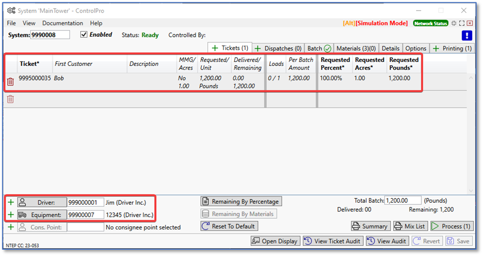 In this example, we’ll show you how to process a ticket in ControlPro. This article assumes you know how to create materials, customers, drivers, equipment, and tickets. If you need assistance with any of these steps, please refer to our other KnowledgeBase articles.