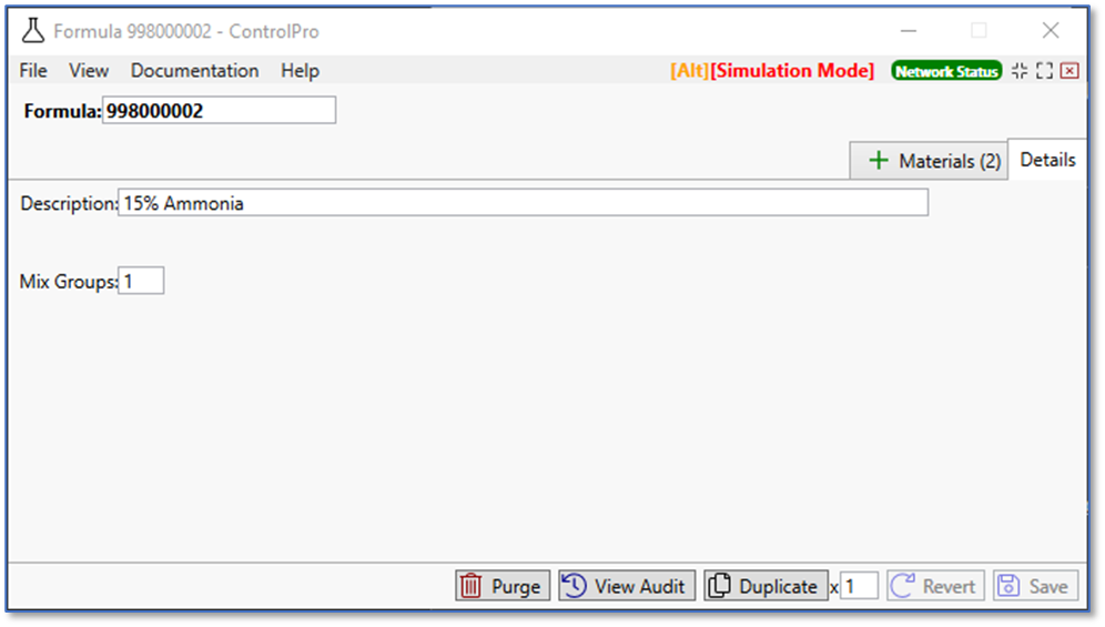 Under the details tab, create a name for the new formula in the description field. Click save.