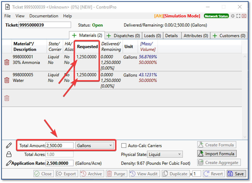 When adjusting the total amount field, it will automatically update the amount of individual material, while maintaining the blend ratio.