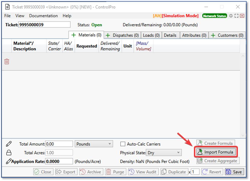 Next, create a new ticket, then click the “Import Formula” button. In the popup window, select the formula we created.