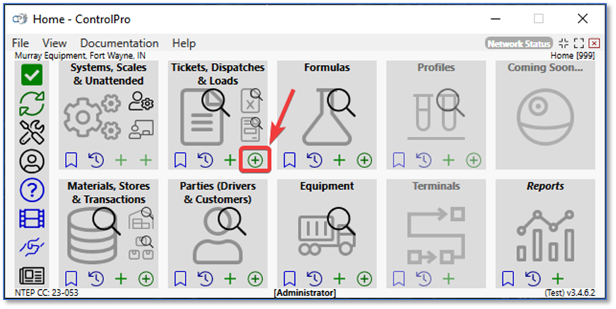 This article discusses originated tickets. When creating a normal ticket, the originator assigned to your instance is the one chosen for the ticket. Originated tickets allow you to create tickets for any originator, regardless of which one you are currently using. In the tickets and loads section, click on the green plus sign with a circle around it.