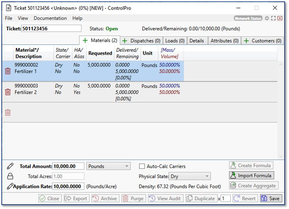 The ticket is ready for processing. This originated ticket feature is used for creating tickets for other originators, usually other instances of ControlPro. We do not recommend creating tickets for a third-party originator that is agronomy software. That’s because, once this ticket is sent back to them, it won’t match any tickets they created in their system. In this scenario, it’s best to create the ticket in the agronomy software, then export it to ControlPro.