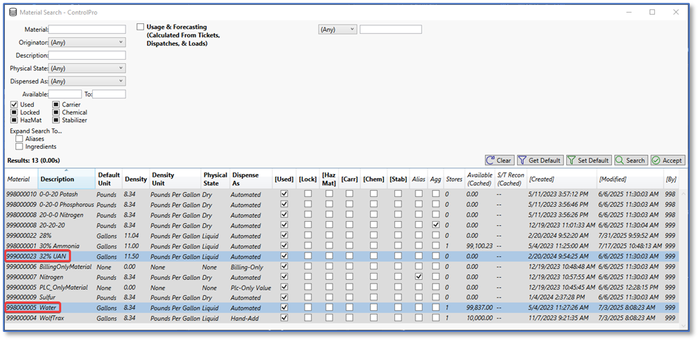 Aggregate materials are a way to combine multiple materials into one new material. The source materials that create the aggregate are called ingredients. Unlike formulas, aggregate materials can be assigned to systems and variables. This is useful if you’re always going to combine the ingredients and rarely dispense them separately. This article involves creating tickets and materials. If you need assistance with those check out our other articles available in the Knowledgebase.