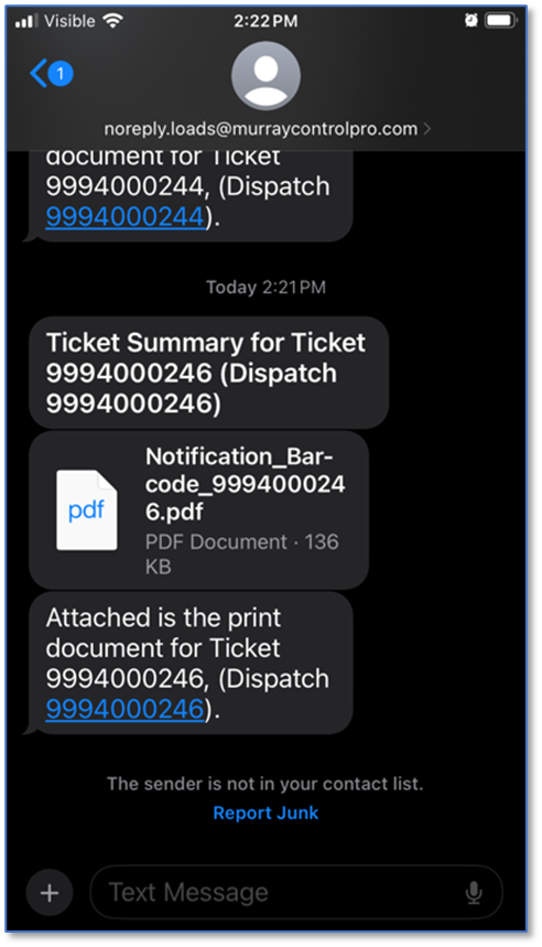 Dispatch notification via MMS text message