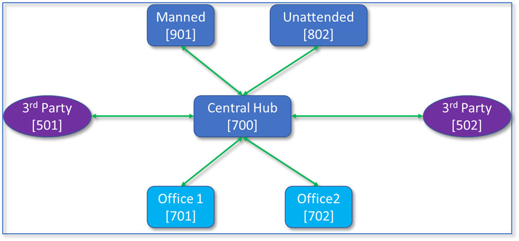 Alternatively, CP instances can be spread out into longer “chains” so that the loadouts have less “hops” from their ticket sources. This helps tickets created in an office instance or a dedicated 3rd party show up in the desired loadout instance quicker. An example of this would be below.