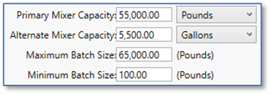 The Primary Mixer Capacity and Alternate Mixer Capacity work together to ensure that the mixer does not overflow. One will be a mas amount and the other a volumetric amount.