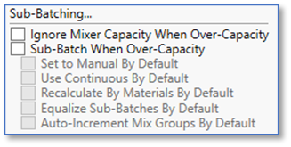 Enabling this option will enable all the sub-batching options below. Without sub-batching enabled, the batch size will be limited to the mixer capacity. While enabled, the batch size will only be limited to the system’s Maximum Batch Size.