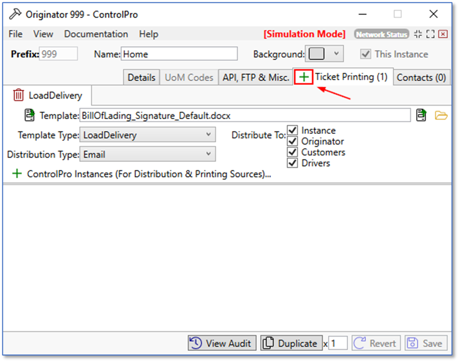 On the ticket printing tab, click the green plus sign to add a tab in the bottom section.